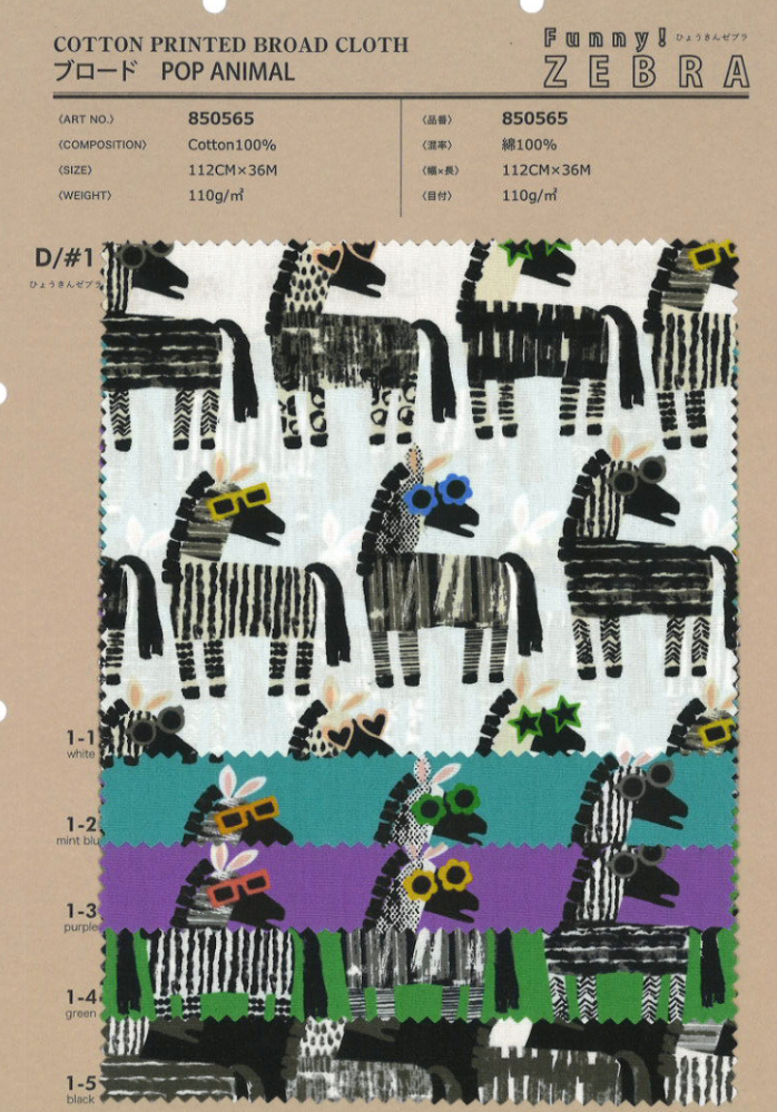 【3803】SO-850565 ブロード ポップアニマル 綿100% アニマル柄 シマウマ