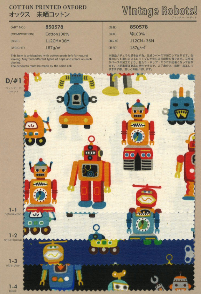 【3811】SO-850578 オックス 未晒コットン 綿100% ロボット
