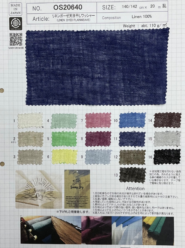 生地名称 | リネン ガーゼ 天日干し ワッシャー リネン100% |