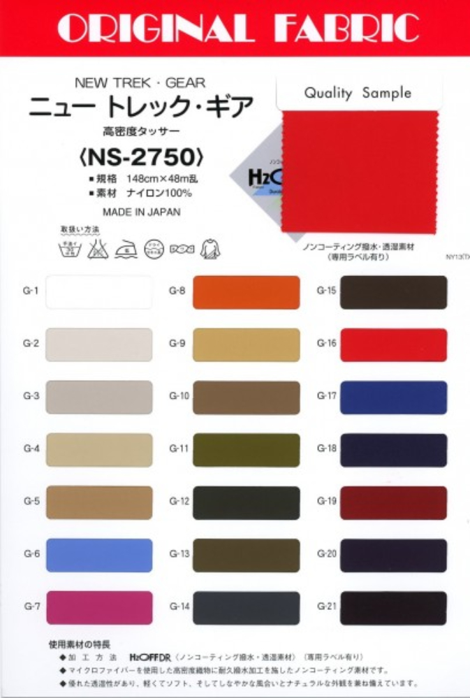 | 生地名称 | ニュートレック・ギア 撥水 透湿 |