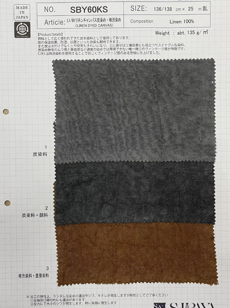 【3903】SH-SBY60KS リネン キャンバス 炭染 柿渋染