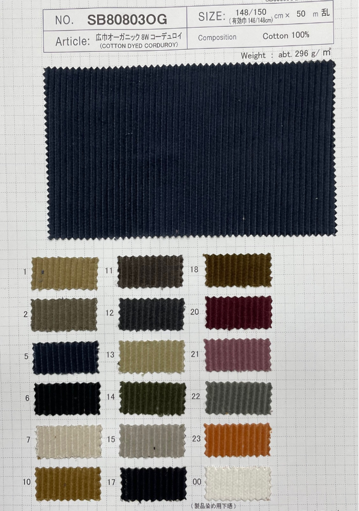 【3917】SH-SB80803OG 広巾オーガニック 8W コーデュロイ