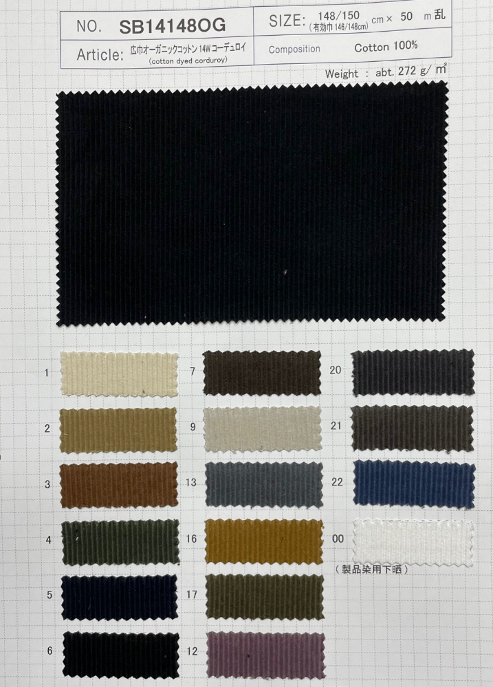 【3918】SH-SB14148OG 広巾オーガニック 14W コーデュロイ