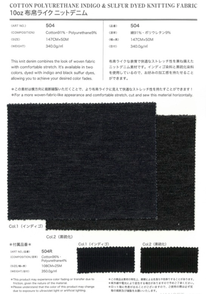 【3930】SO-504 10oz 布帛ライク ニットデニム