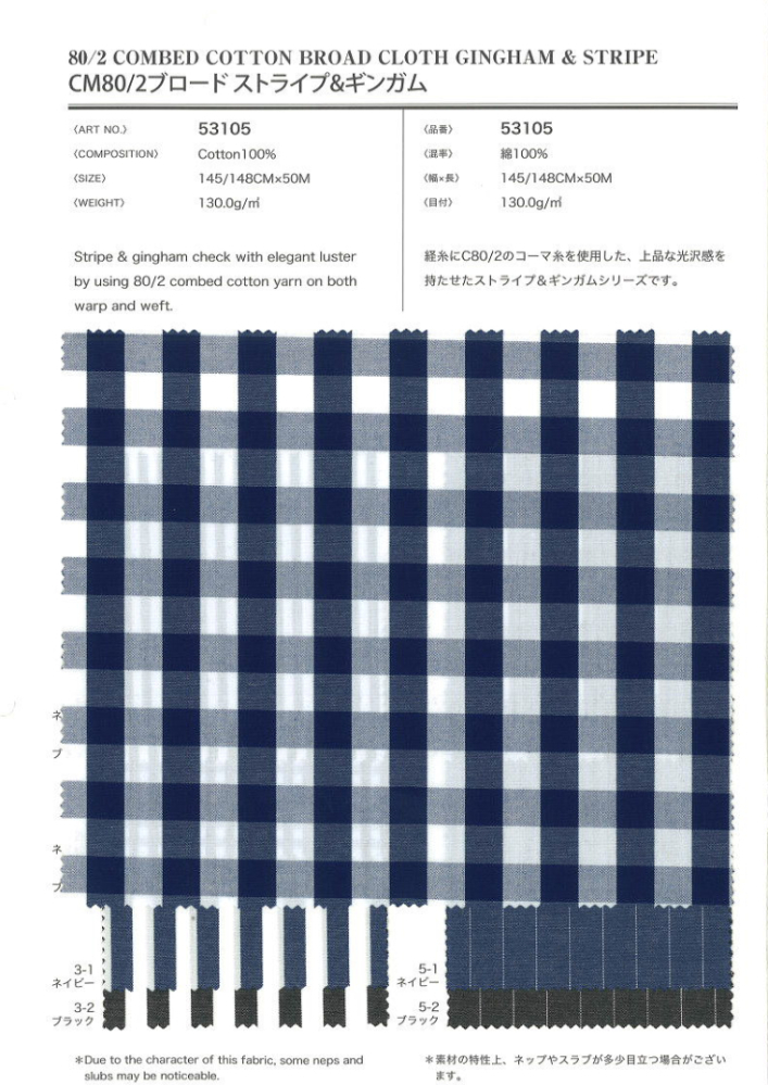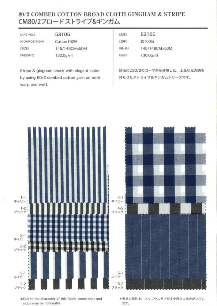 | 生地名称 | CM80/2 ブロード ストライプ&ギンガム |