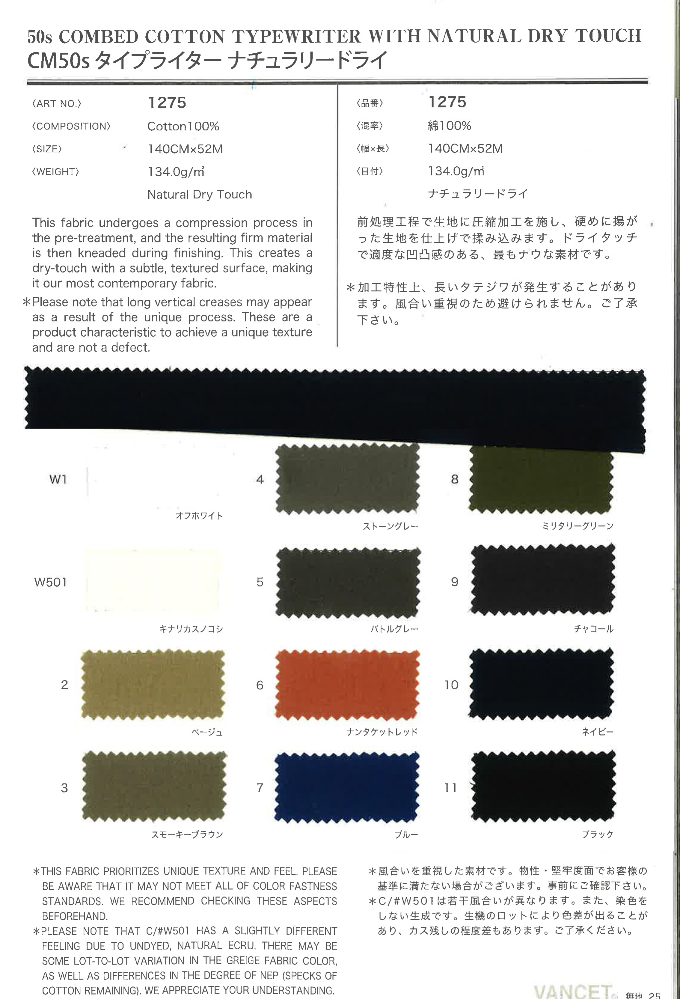 | 生地名称 | CM50s タイプライターナチュラリードライ |