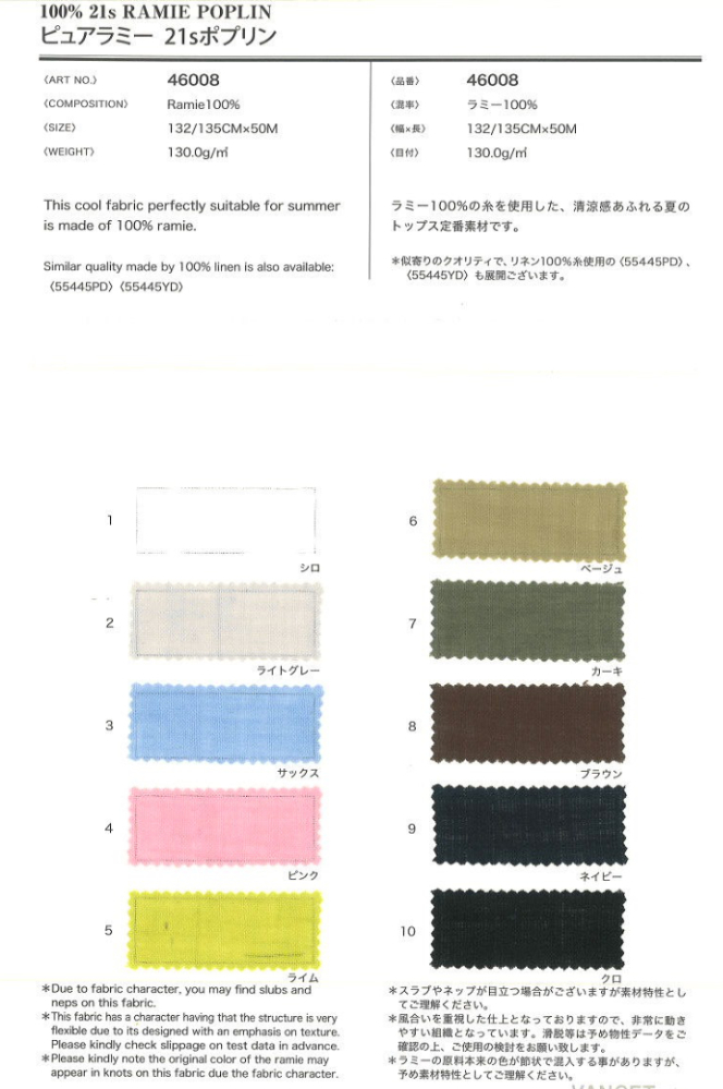 【3945】SO-46008 ピュアラミー 21sポプリン