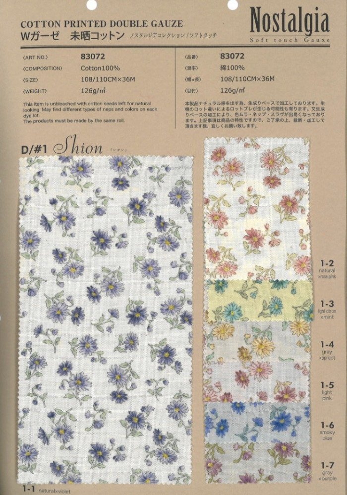| 生地名称 | Wガーゼ 未晒 コットン 花柄 ノスタルジア |