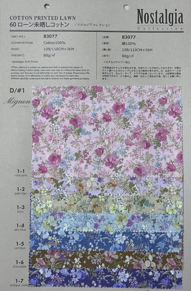 | 生地名称 | 60 ローン 未晒 コットン 花柄 ノスタルジア |