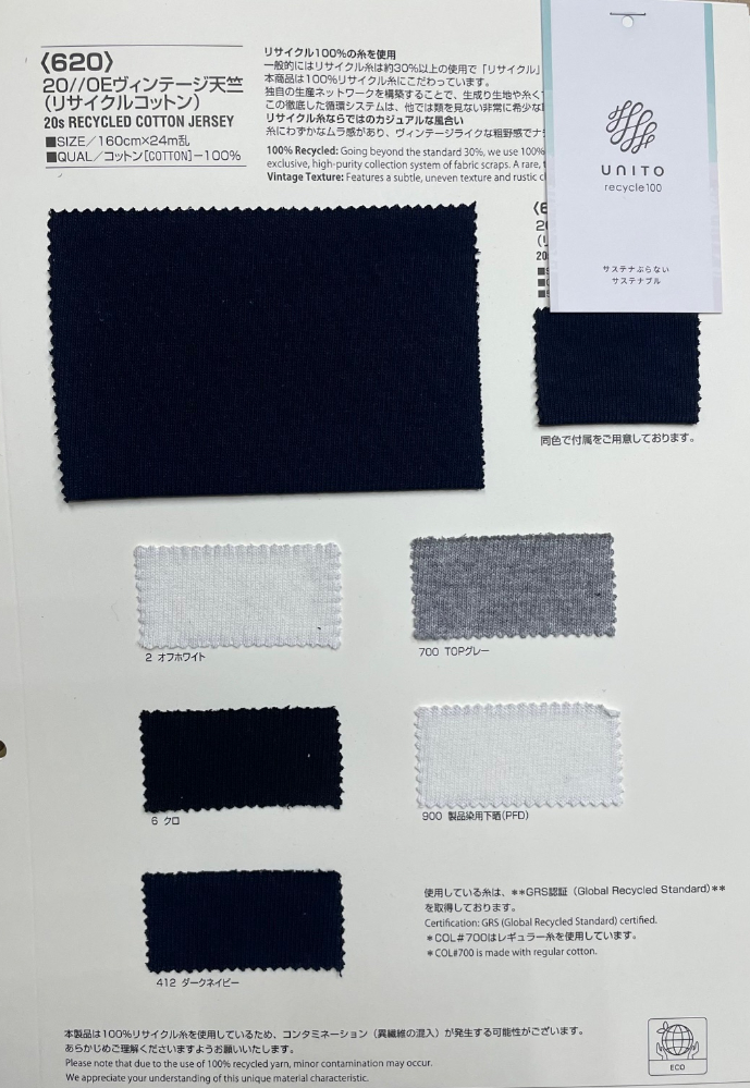 | 生地名称 | 20/OE ヴィンテージ 天竺 リサイクルコットン |