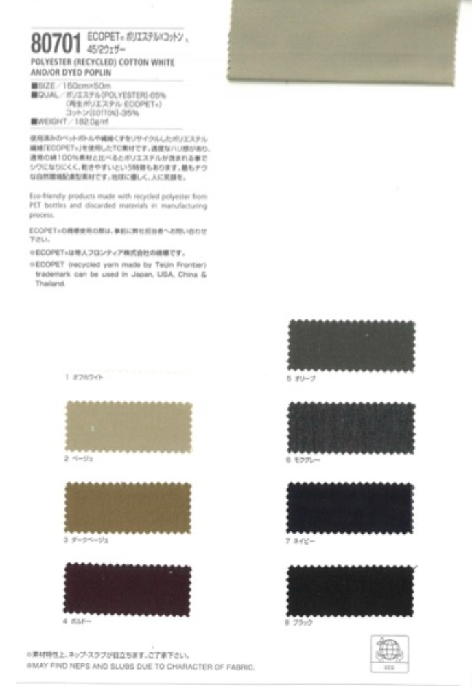 | 生地名称 | エコペット ポリエステル コットン 45/2 ウェザー |