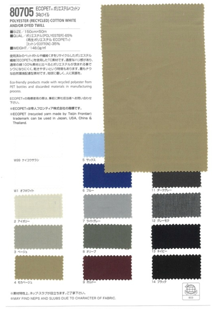 | 生地名称 | エコペット ポリエステル コットン 34s ツイル |