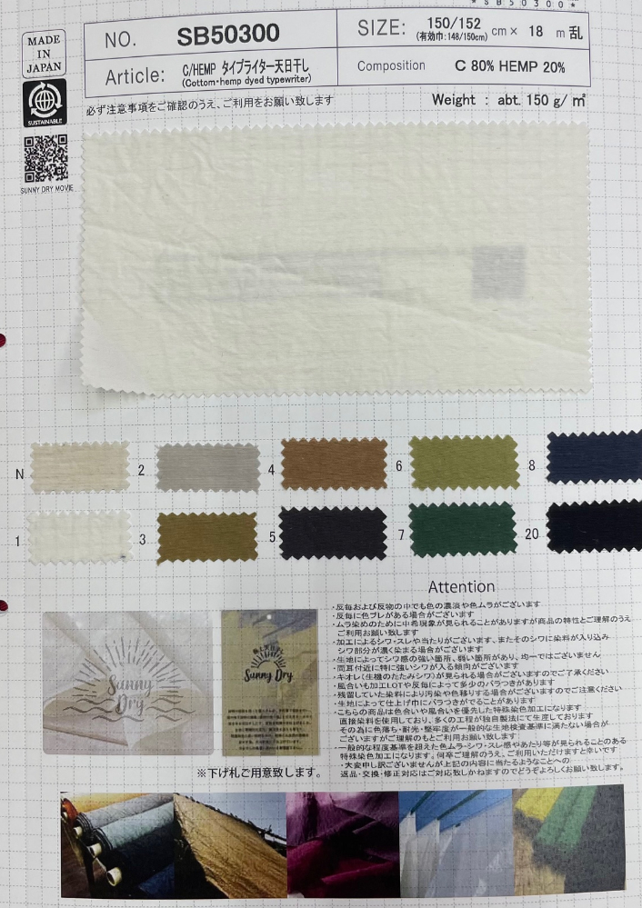 | 生地名称 | C/HEMP タイプライター 天日干し |